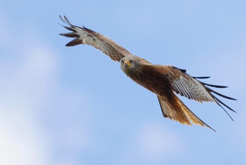 This magnificently graceful bird of prey is unmistakable with its reddish-brown body, angled wings and deeply forked tail. It was saved from national extinction by one of the world's longest running protection programmes, and has now been successfully re-introduced to England and Scotland. It is an Amber List species because of its historical decline.
